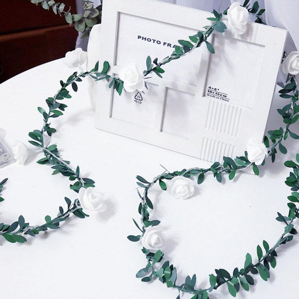7.5m 50 LEDs Solar Simulation Green Leaf Rattan Rose Flower Vine LED Light String Garland Decoration