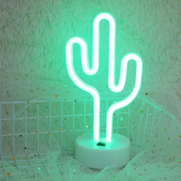 Cactus Shape Romantic Neon LED Holiday Light with Holder, Warm Fairy Decorative Lamp Night Light for Christmas, Wedding, Party, Bedroom(Green Light)
