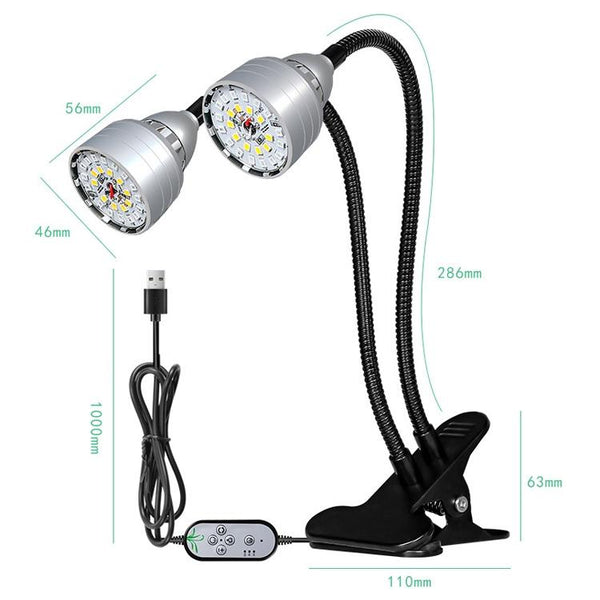 LED Clip Plant Lamp USB Remote Control Dimming Grow Light, Style: Double Head(Full Spectral)