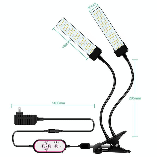 LED Clip Plant Light Timeline Remote Control Full Spectral Fill Light Vegetable Greenhouse Hydroponic Planting Dimming Light, Specification: Two Head UK Plug