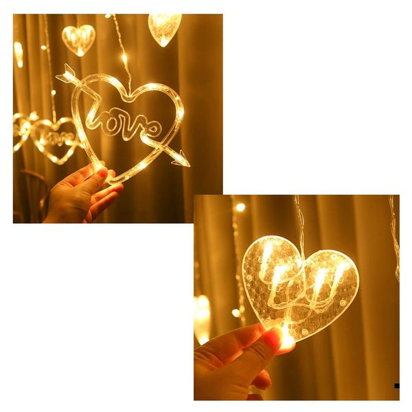 LED Heart-Shaped Decorative Lights Curtain Lights Holiday Dress String Lights, EU Plug(Warm White Light)