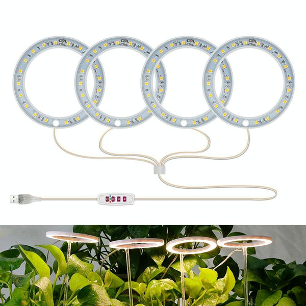LED Plant Growth Lamp Full Spectroscopy Intelligent Timing Indoor Fill Light Ring Plant Lamp, Power: Four Head(Sunshine)