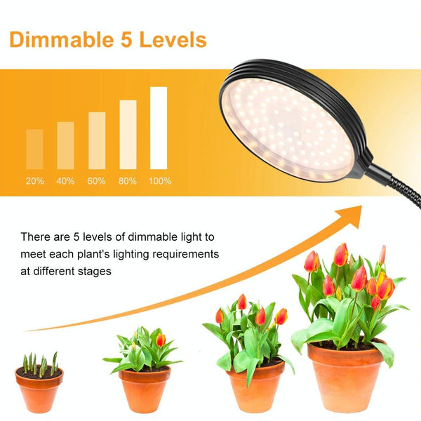 LED Plant Growth Lamp USB Remote Control Clip Waterproof Full Spectral Natural White Seedling Planting Light, Power: 15W One Head