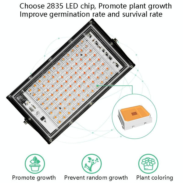 LED Plant Light Full Spectroscopy Waterproof Growth Lamp Seedlings Vegetable Filling Lamp, Power: Three-wire Access 96 Beads 100W(Pink Light)