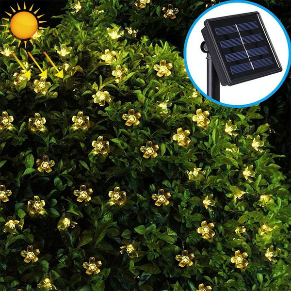 Peach Blossom Shape 50 LEDs Outdoor Garden Waterproof Christmas Spring Festival Decoration Solar Lamp String(Warm White)