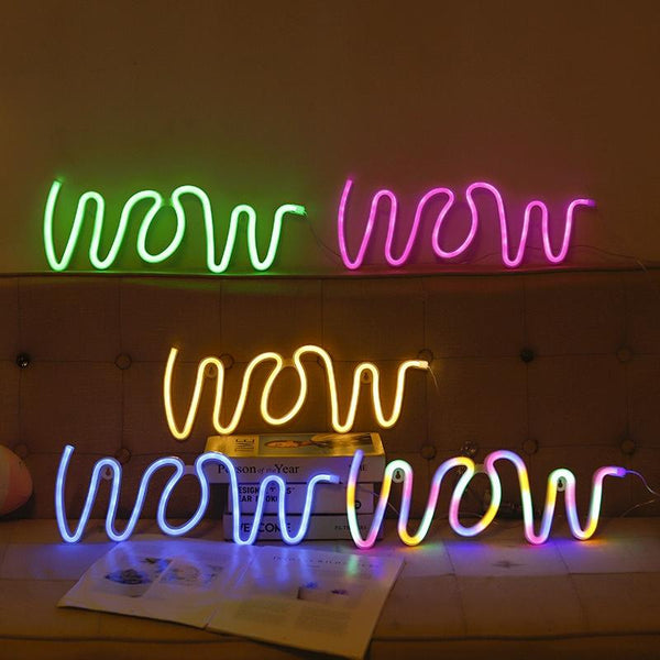 WOW Shape LED Neon Light Wall Hanging Bar Atmosphere Lights(Colorful Light)