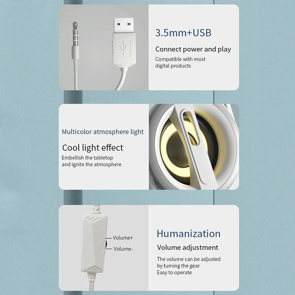K1 Mini Desktop Computer Wired Speakers USB Subwoofer Speaker, Color: Light Edition White