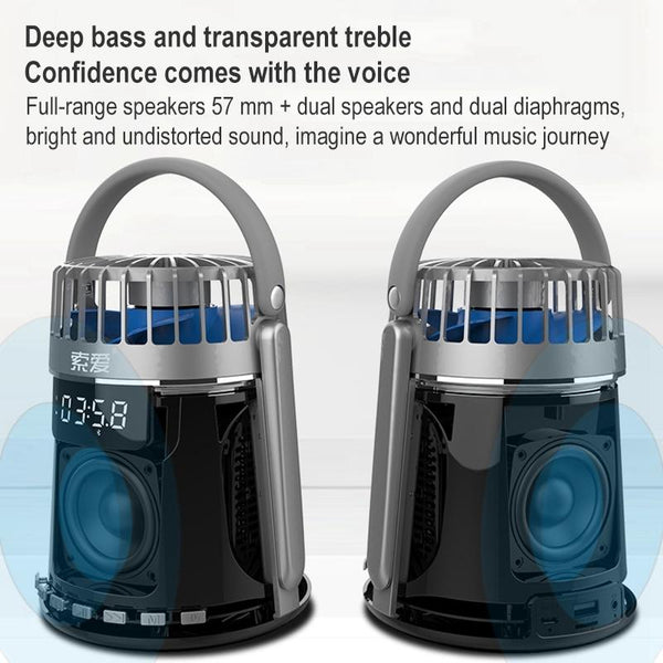 SOAIY K8 Wireless Bluetooth Dual Alarm Clock Speaker with Small Fan(Grey)