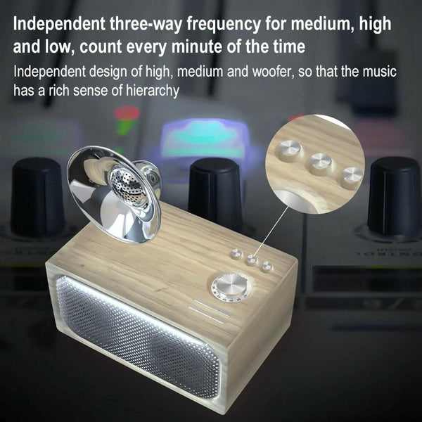 SOAIY Retro Subwoofer Bluetooth Speaker Wireless Mini Radio(White)