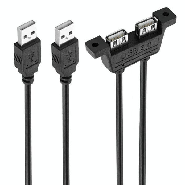 2 USB 2.0 Male to 2-port USB 2.0 Female with 2 Screw Holes Extension Cable, Length: 50cm