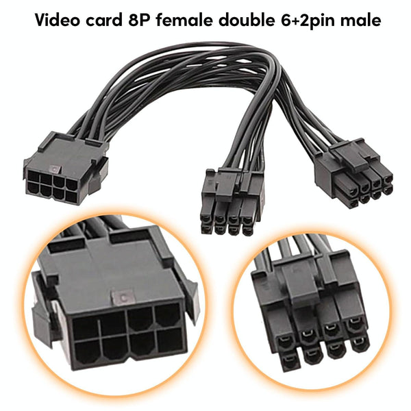 20cm 8P Female To Dual 6+2Pin Male Graphics Card Power Cable 8P To Dual 8P 1 To 2 Power Adapter Cable