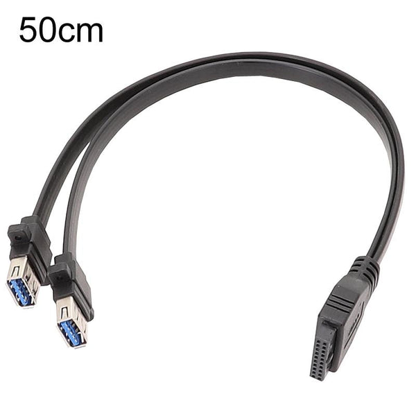 50cm Motherboard USB3.0 Panel Cable Front 19Pin To Dual-Port A Female Data Flat Cable