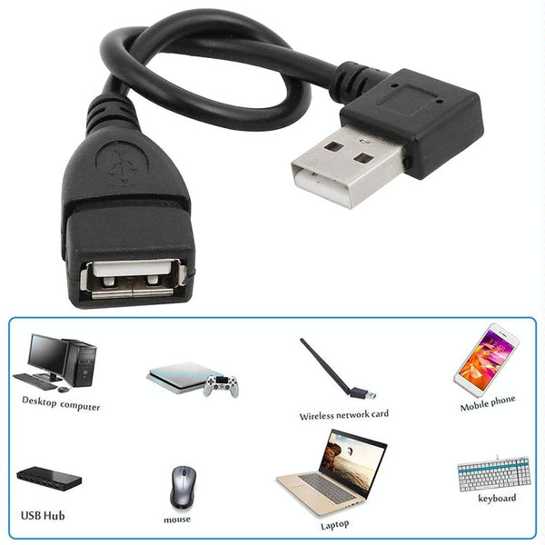 90 Degree USB 2.0 AM to AF Adapter Cable, Length: 25cm