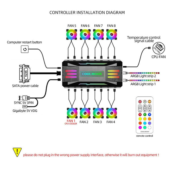 1. Four-in-one controller: equipped with four core functions: music induction rhythm, PWM intelligent temperature control, 5V ARGB Shenguang synchronization, and wireless remote control