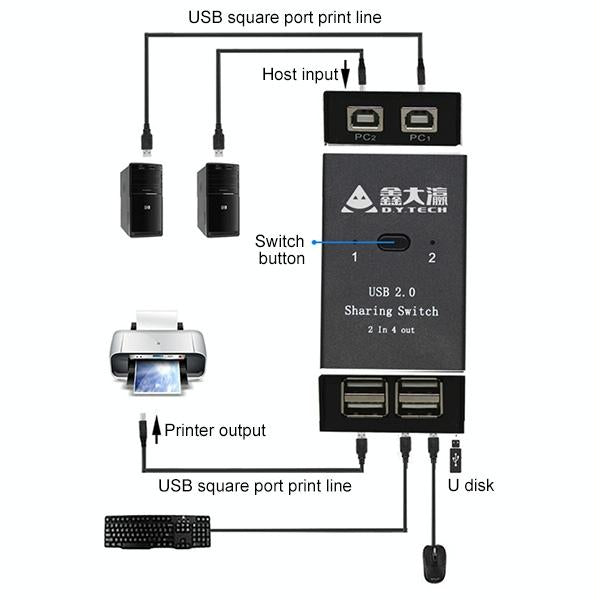 DY-B046 2 In 4 Out USB 2.0 Sharing Switch USB Flash Printer Adapter