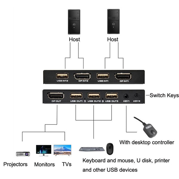 FJGEAR FJ-DK201 60HZ 2 Ports DP + USB To KVM Switcher With Desktop Controller