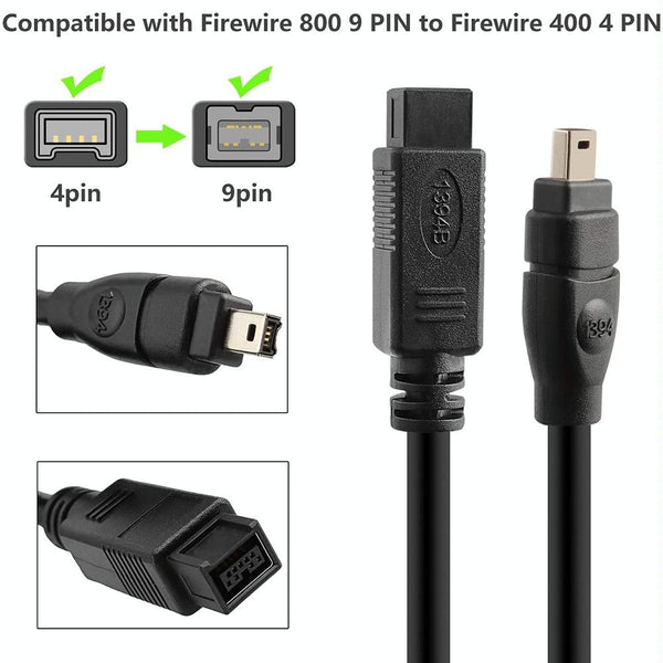 4. IEEE 1394b Firewire 800 cables are perfect for connecting your new Firewire 1394b devices to your legacy 1394a ports.