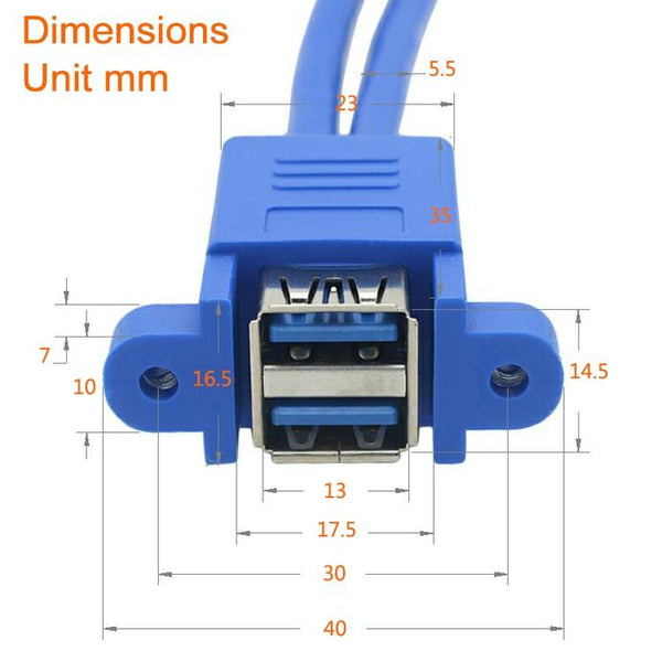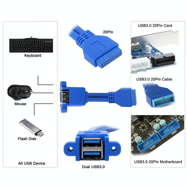 Motherboard 20pin Turn Double USB3.0 Extension Cablewith Ear Baffle Cable