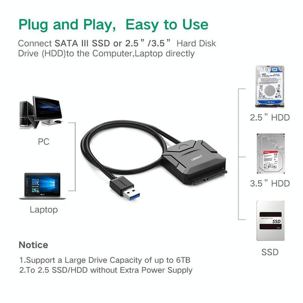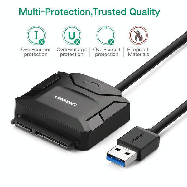 UGREEN USB 3.0 to SATA Adapter Cable Converter for 2.5 / 3.5 inch Hard Drive Disk HDD and SSD, Support UASP SATA 3.0(Black)