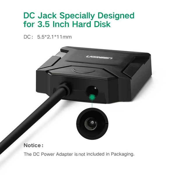 4. 12V 2A Power Adapter not included: This USB 3.0 to SATA 15+7 pin connector cable is equipped with a DC-Jack port, which could supply enough power. With the power supply, both 2.5 inch or 3.5 inch SATA HDD could be connected. Please be kindly noted that power supply is necessarily required if 3.5 inch SATA HDD is connected.