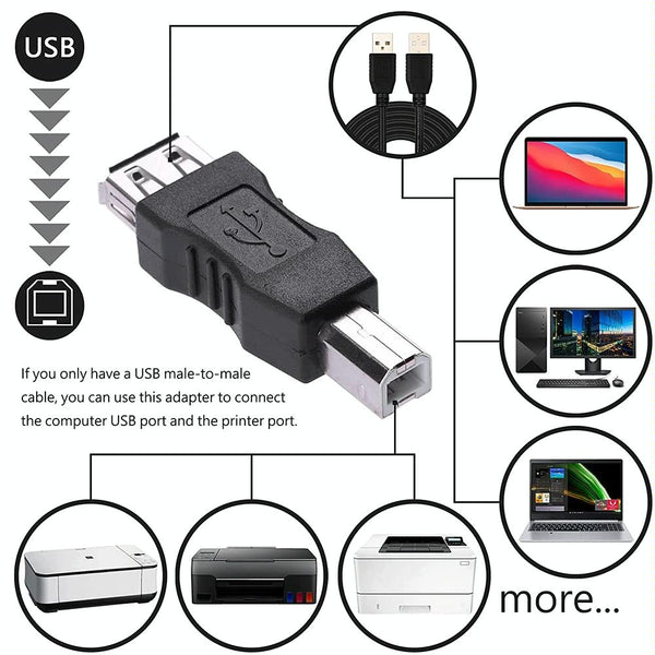 USB 2.0 A Female to B Male Adapter Connector AF to BM Converter for Printer(Black)