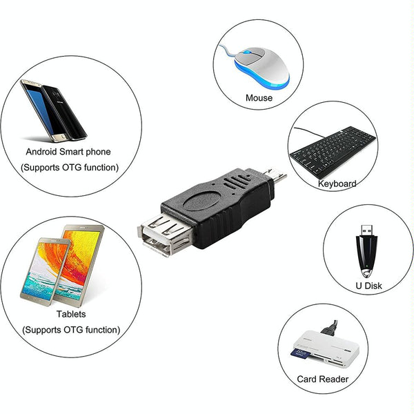 USB A Female to Micro USB 5 Pin Male OTG Adapter