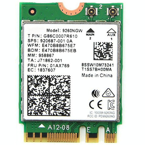 1.Interface: NGFF(keyA/E), USB. FRU: 01AX769, Frequency Band: 2.4GHz and 5GHz, Network Standard: 802.11n, 802.11ac. Max Speed:300+1730Mbps, Board Form Factor: M.2 2230.