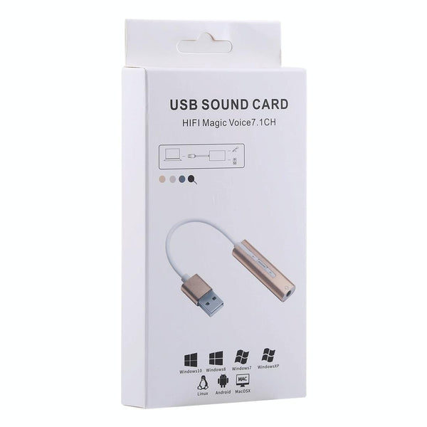 Aluminum Shell 3.5mm Jack External USB Sound Card HIFI Magic Voice 7.1 Channel Adapter Free Drive for Computer, Desktop, Speakers, Headset (Black)