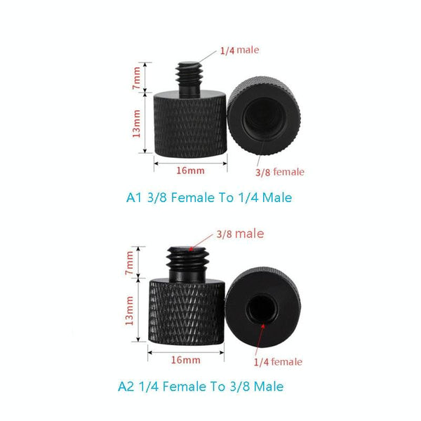 10 PCS Screw Adapter 1/4 Female to 3/8 Male Screw (Black)