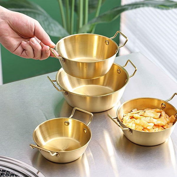 14cm 304 Stainless Steel Thickened Double Ear Soup Bowl Snack Bowl Fried Chicken Bowl(Gold)