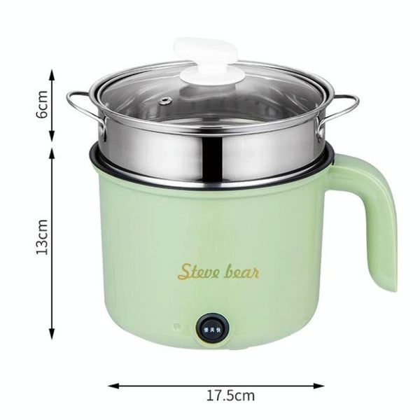 18cm Fast / Slow Gear+Non-stick Pot+Stainless Steel Steaming Grid Multifunctional Mini Electric Cooker(UK Plug Green)