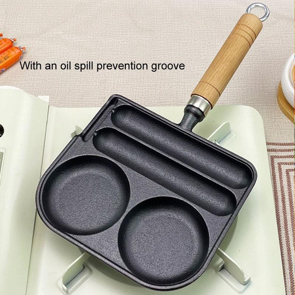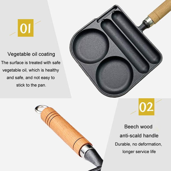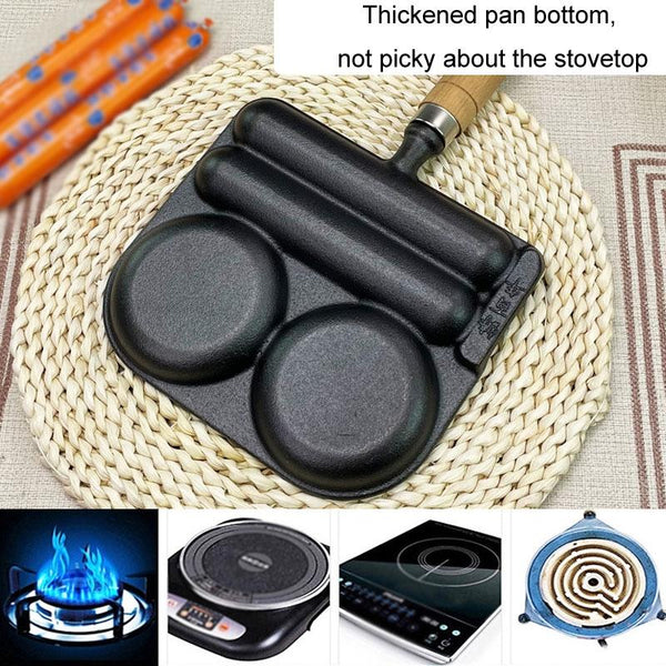 2 In 1 Multifunctional Frying Pan Breakfast Pan Household Cast Iron Roasting Sausage Skillet(Frying Meat Model)