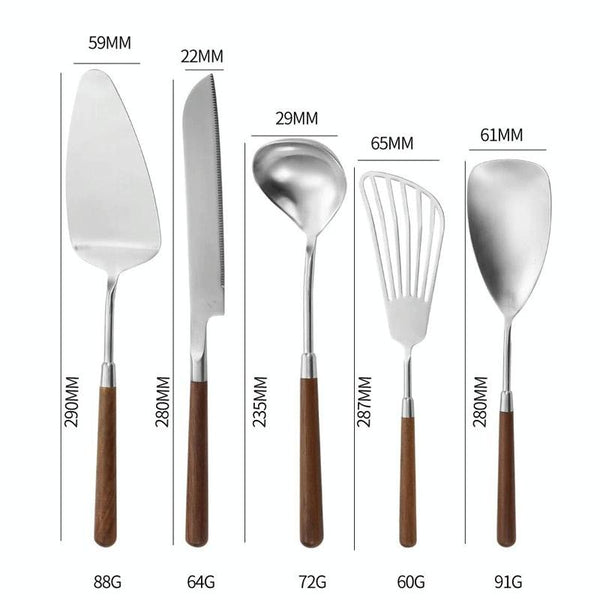 304 Stainless Steel Walnut Handle Cooking Tools Home Restaurant Kitchen Gadgets, Style: Cake Spatula