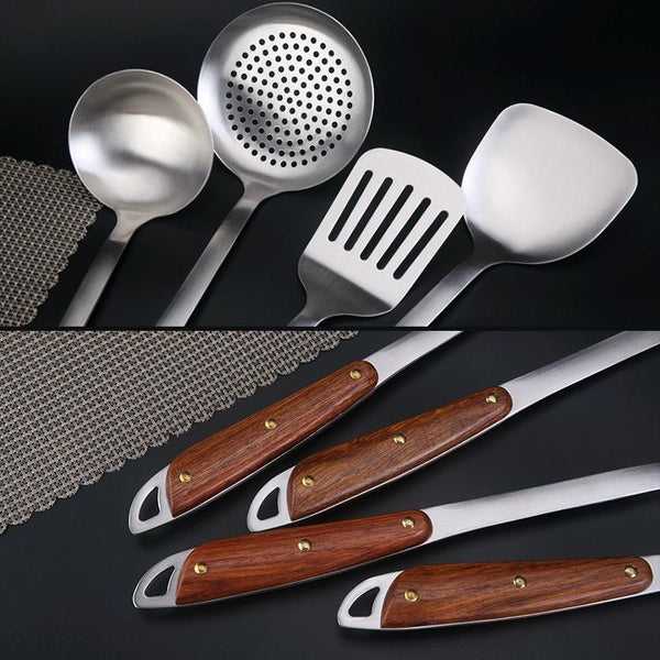 304 Stainless Steel Wooden Handle Kitchenware Home Kitchen Equipment, Style: Fried Spatula