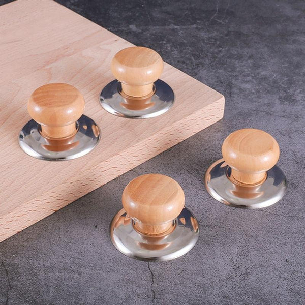 4pcs Household Cap Carrying Handle Kitchen Single Hole Pot Buttons Top Beads Pot Lid Accessories, Model: Solid Wood