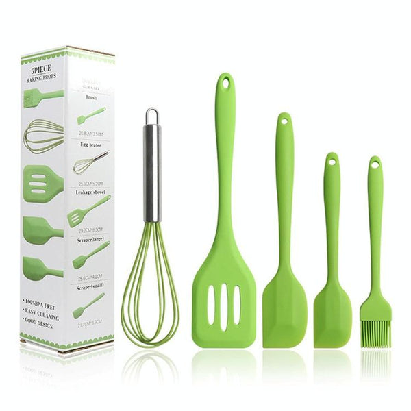 5 In 1 Pot Spatula Silicone Spatula Egg Beater Cooking Baking Tool Set(Green)