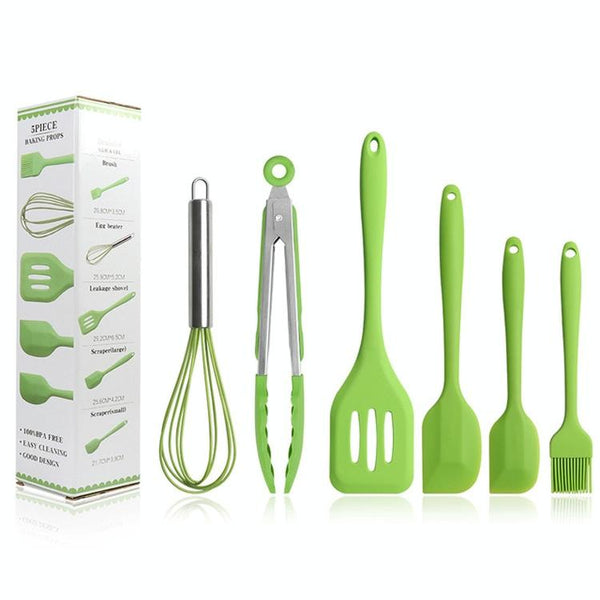 6 in 1 Silicone Kitchenware Slotted Spatula Scraper Egg Beater Brush Food Clip Set(Green)
