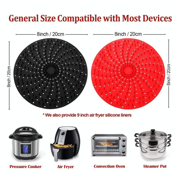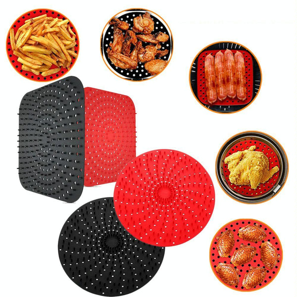 Air Fryer Reusable Silicone Liner Mat Non-Stick Steamer Pad Kitchen Accessories Square Black 20.2cm