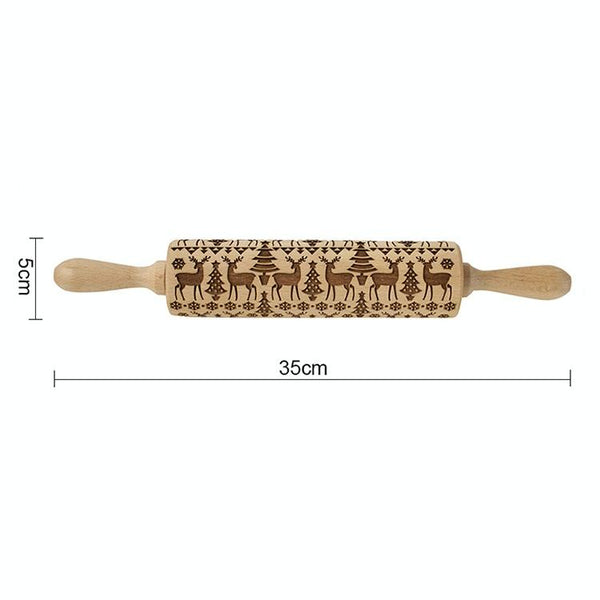 Christmas Embossing Rolling Pin Baking Cookies Fondant Cake Dough Engraved Roller(35cm elk)