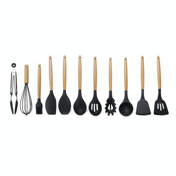 kn020 11 in 1 Wooden Handle Silicone Non-stick Spatula Spoon Kitchen Tool Set