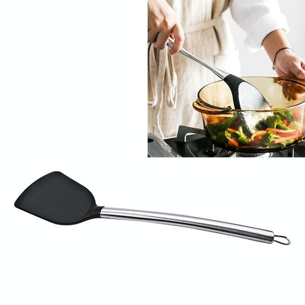 kn605 Stainless Steel Handle Silicone Slice High Temperature Resistance Cooking Slice(Black)