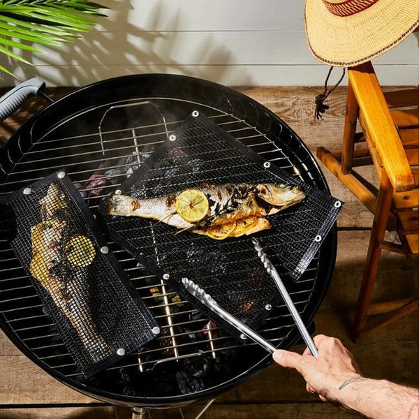 Non-Stick Grid Sheet Teflon Barbecue Mat Grill Grid Mat, Size:36x42 cm(Brown)