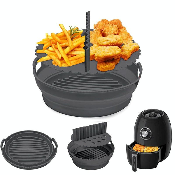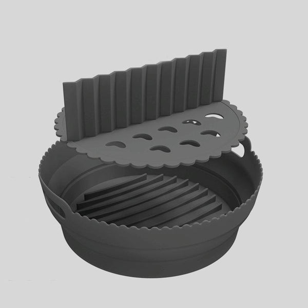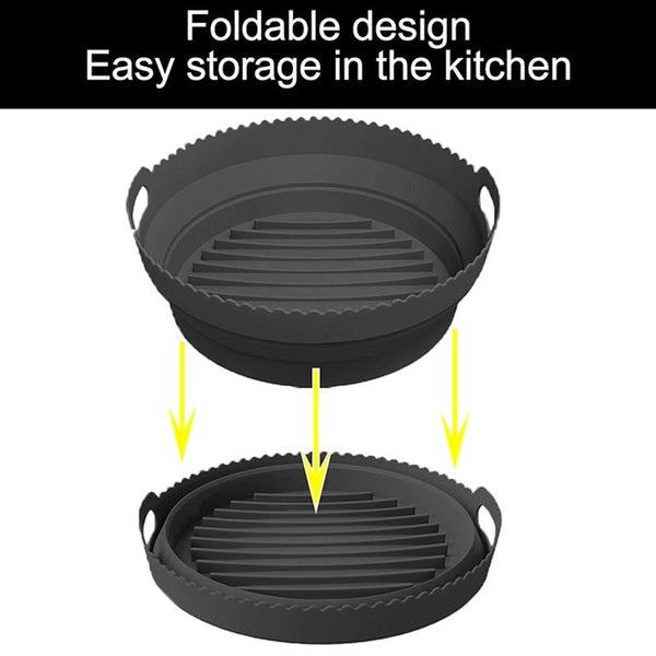 Round 2 Layer Air Fryer Silicone Basket Reusable Foldabl Air Fryer Mold Liner Tray(Black)