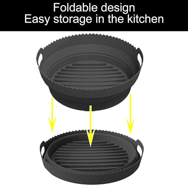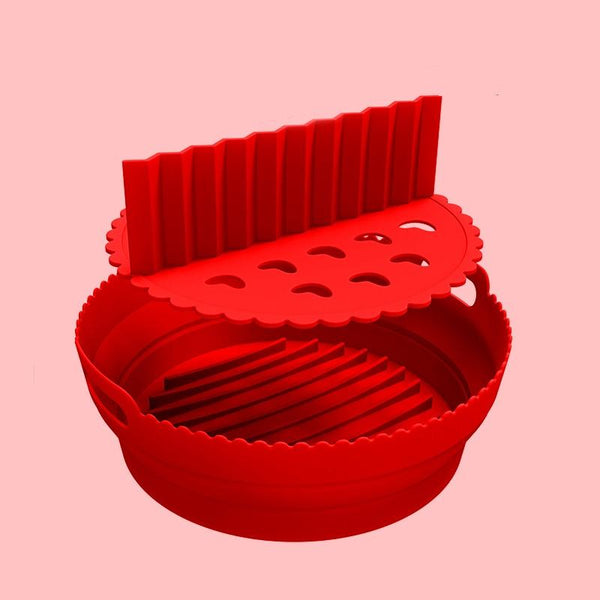Round 2 Layer Air Fryer Silicone Basket Reusable Foldabl Air Fryer Mold Liner Tray(Red)