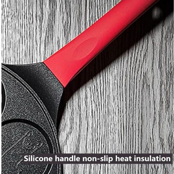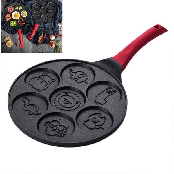 Seven-hole Breakfast Pan Multifunctional Flat Bottom Frying Pan Non-stick Egg Dumpling Pan(Black Animal Pattern)