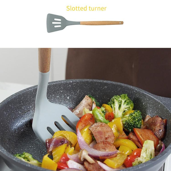 Silicone Wood Handle Leak Shovel Heat-resistant Cooking Shovel Kitchen Tools