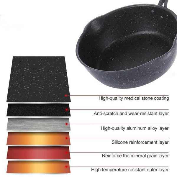 5. The coating is not sticky inside the pot. It is recommended to use it with a wooden shovel. Do not use sharp objects such as steel balls to avoid scratches. Use on an induction cooker, the edges are not easy to burn, and the effect is better.