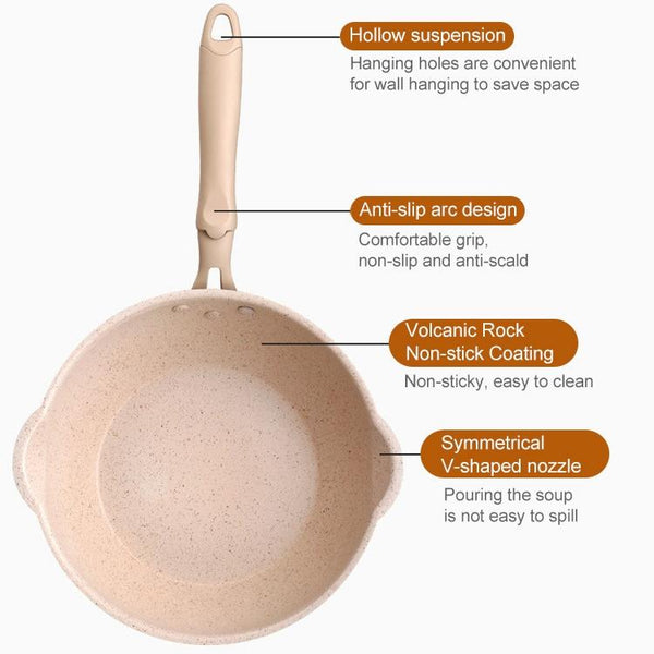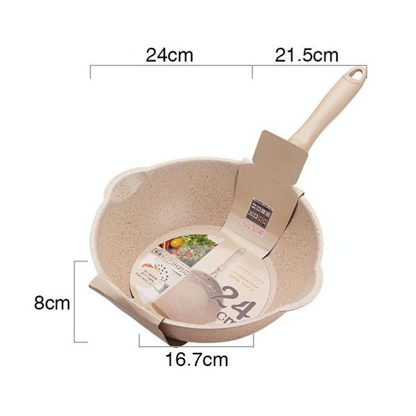 Thick Bottom Maifan Stone Household Small Frying Pan Non Stick Pan Deep Frying Pan, Color:24cm Beige Without Cover