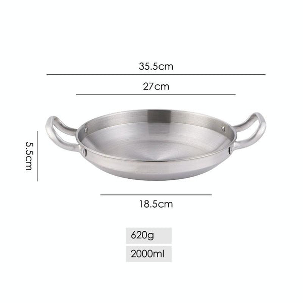 Thickened Stainless Steel Double Ears Pan Seafood Rice Pan Fried Chicken Tray, Size: 26cm Silver