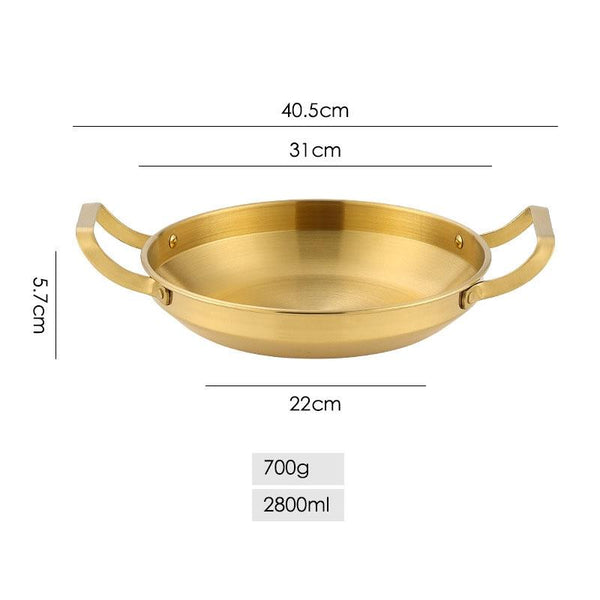Thickened Stainless Steel Double Ears Pan Seafood Rice Pan Fried Chicken Tray, Size: 30cm Golden
